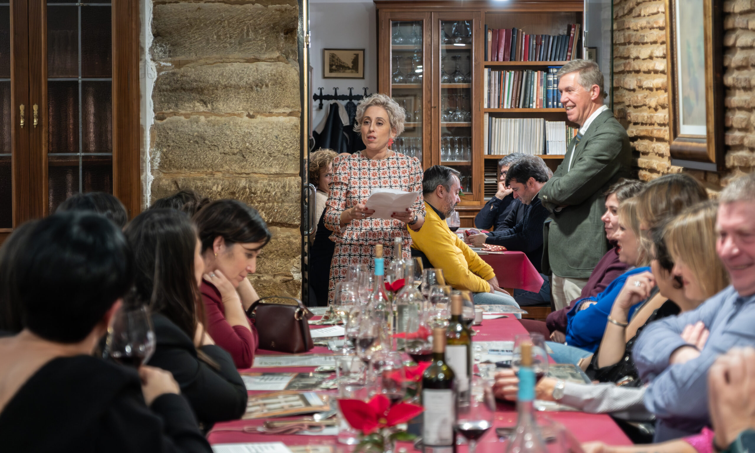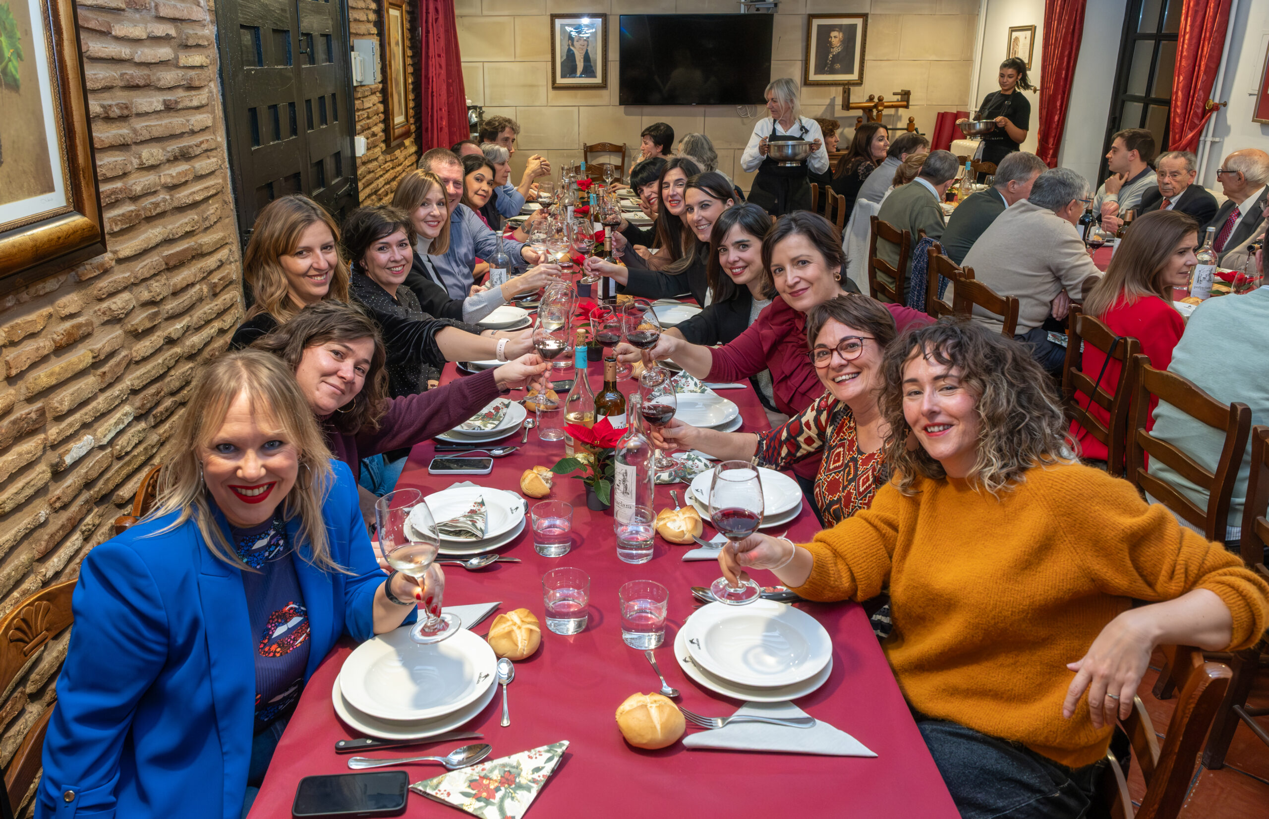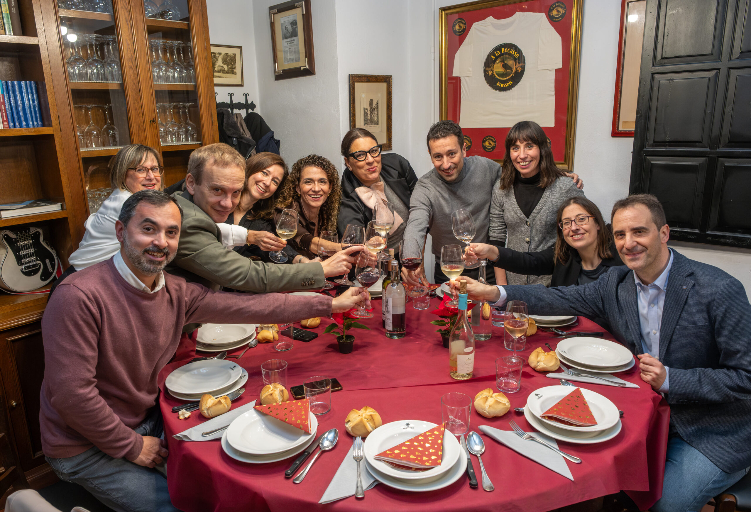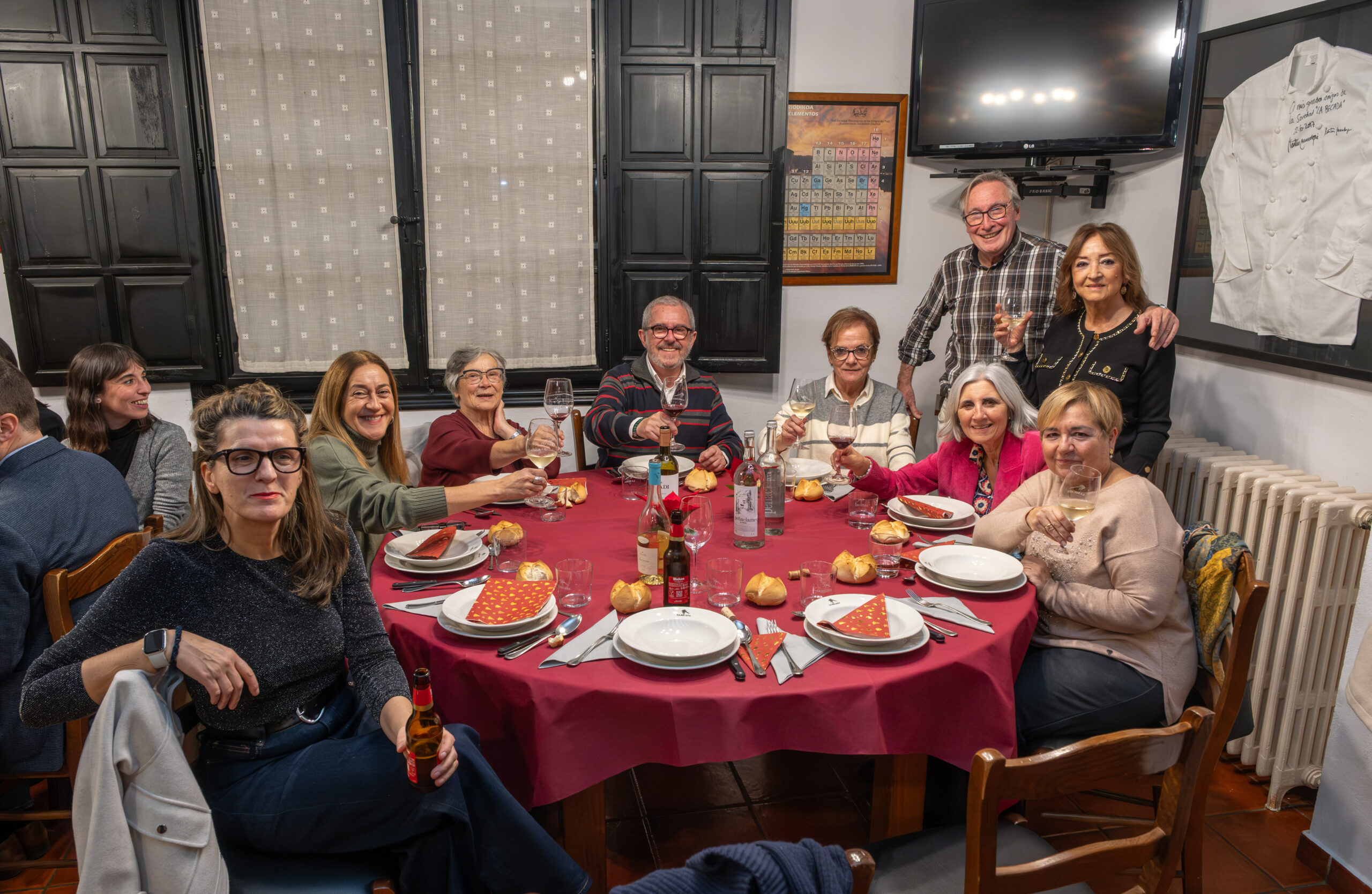 Anoche la Sociedad Gastronómica La Becada, ubicada en el edificio del siglo XVIII de la calle Santiago que fue hogar de los hermanos D’Elhuyar, acogió la cena de Navidad de los periodistas riojanos con su Cuadro Médico, un acto que sirvió de inicio a los diversos actos que se celebrarán a lo largo de 2026 para conmemorar el 25 aniversario de la Casa de los Periodistas. En esta ocasión disfrutamos de un menú tradicional de Navidad y el servicio de la cena estuvo a cargo de un grupo de excelentes cocineros de La Becada, sociedad que se inauguró en 1941, sesenta años antes que nuestra Casa. El vino de la cena fue gentileza de Bodegas Izadi. Cada uno de los asistentes fue obsequiado con un ejemplar original de la revista La Codorniz que, en plena dictadura, convirtió el humor en una trinchera de libertad.